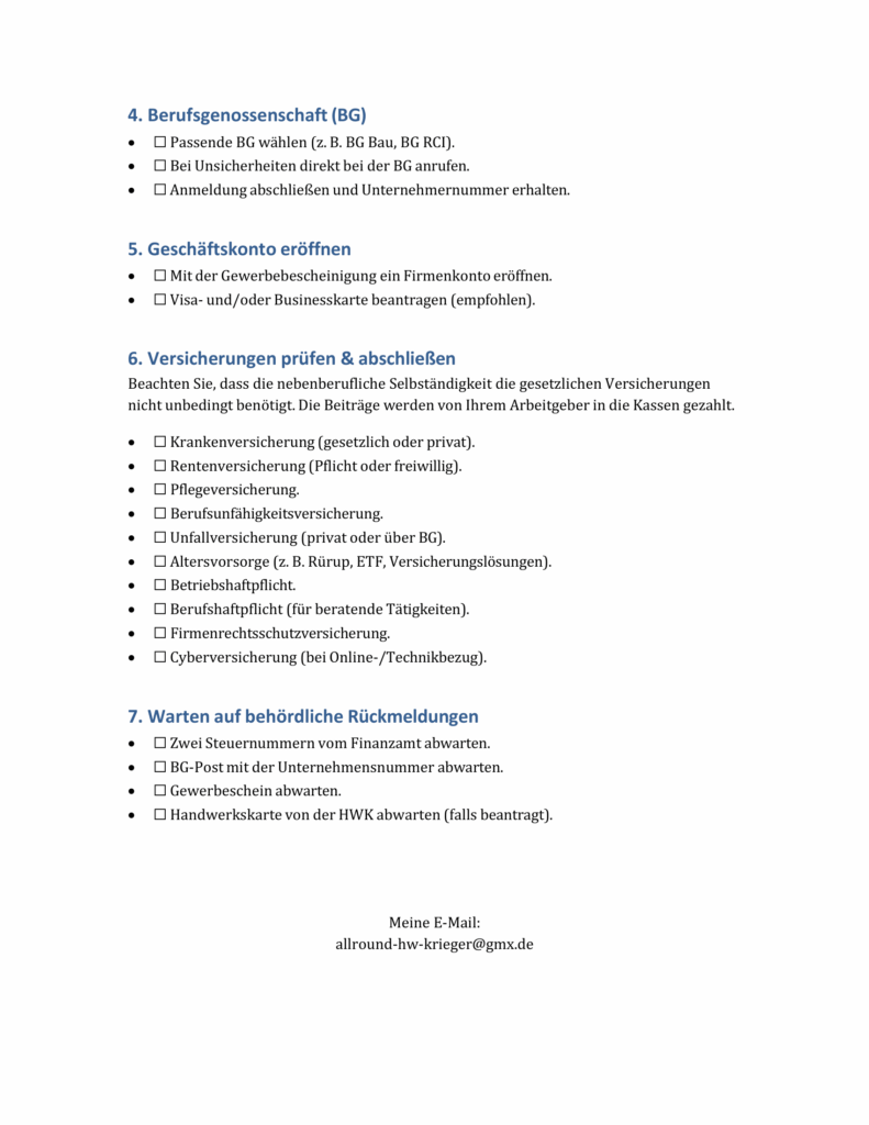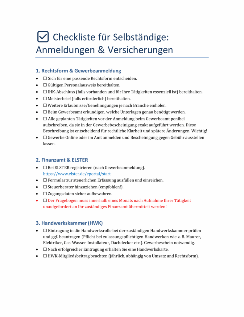 Gerade bei Themen wie Gewerbeanmeldung, Finanzamt, Handwerkskammer oder Versicherungen gibt es zahlreiche kleine Besonderheiten, die man kennen sollte. Viele dieser Informationen sind im Internet nur schwer zu finden oder über verschiedene Quellen verteilt.